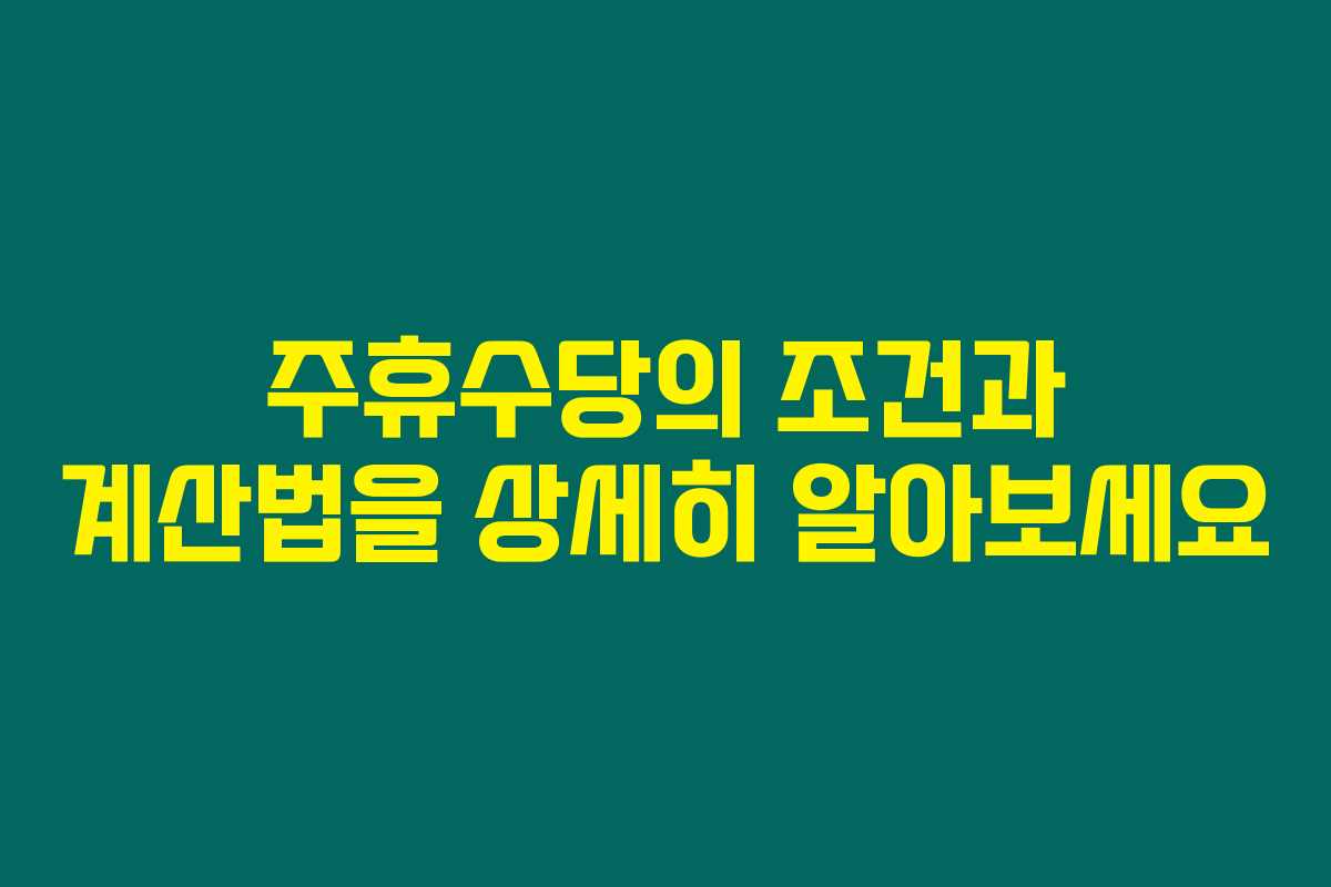 주휴수당에 대해 궁금하신가요? 주휴수당은 근로자가 일주일에 15시간 이상 일했을 때, 주 1일 유급휴일을 받을 수 있는 제도랍니다. 특히 근로자로서의 권리를 챙기고 싶거나 고용주로서 올바른 급여 관리를 하고 싶다면 이 글을 통해 주휴수당 제도와 정확한 계산법을 확인해 보세요.