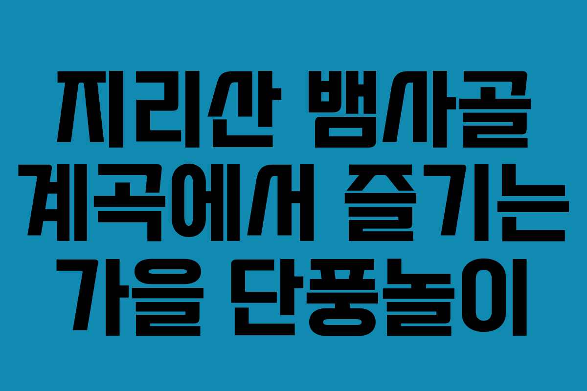 가을이 깊어지는 이 시점에 지리산 뱀사골 계곡은 아름다운 단풍으로 물들어 많은 이들의 발길을 끌고 있습니다. 맑은 계곡과 함께하는 단풍 구경은 특별한 경험이 될 것입니다.