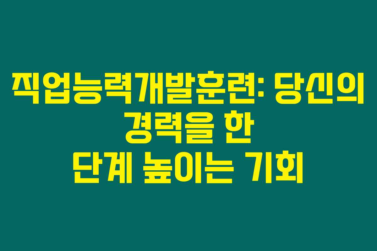 직업능력개발훈련에 대한 정보를 알아보려면, 다양한 종류와 지원대상을 이해하는 것이 중요합니다. 제가 직접 경험해본 결과, 이 훈련은 직업능력을 키우고 직업적 경쟁력을 높일 수 있는 중요한 기제입니다. 각 훈련 프로그램에 대한 정보와 지원을 통해 여러분의 경력을 한층 더 발전시킬 수 있을 것입니다.