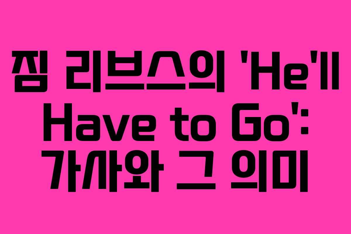 짐 리브스의 ‘He’ll Have to Go’는 이별의 아픔과 그리움을 절절하게 표현한 명곡으로, 지금까지도 많은 사랑을 받고 있습니다. 이 노래를 통해 우리는 이별의 고통과 그리움, 그리고 사랑하는 이에 대한 애틋한 마음을 느낄 수 있습니다.