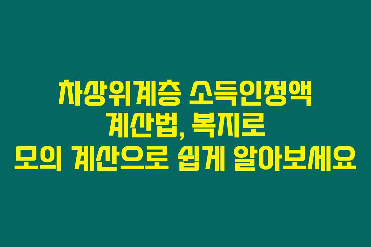 차상위계층 소득인정액을 계산하고 싶으신가요? 이 글은 소득인정액을 손쉽게 구하는 방법과 모의 계산을 통해 직접 확인할 수 있는 절차를 안내합니다. 만약 차상위계층에 해당될지 궁금하시다면 아래를 읽어보시면 도움이 될 거예요.