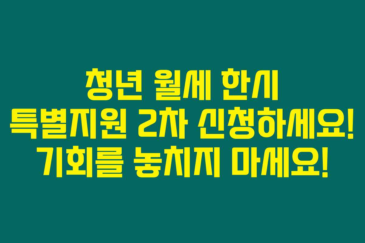 청년 월세 한시 특별지원 2차 신청하세요! 기회를 놓치지 마세요!