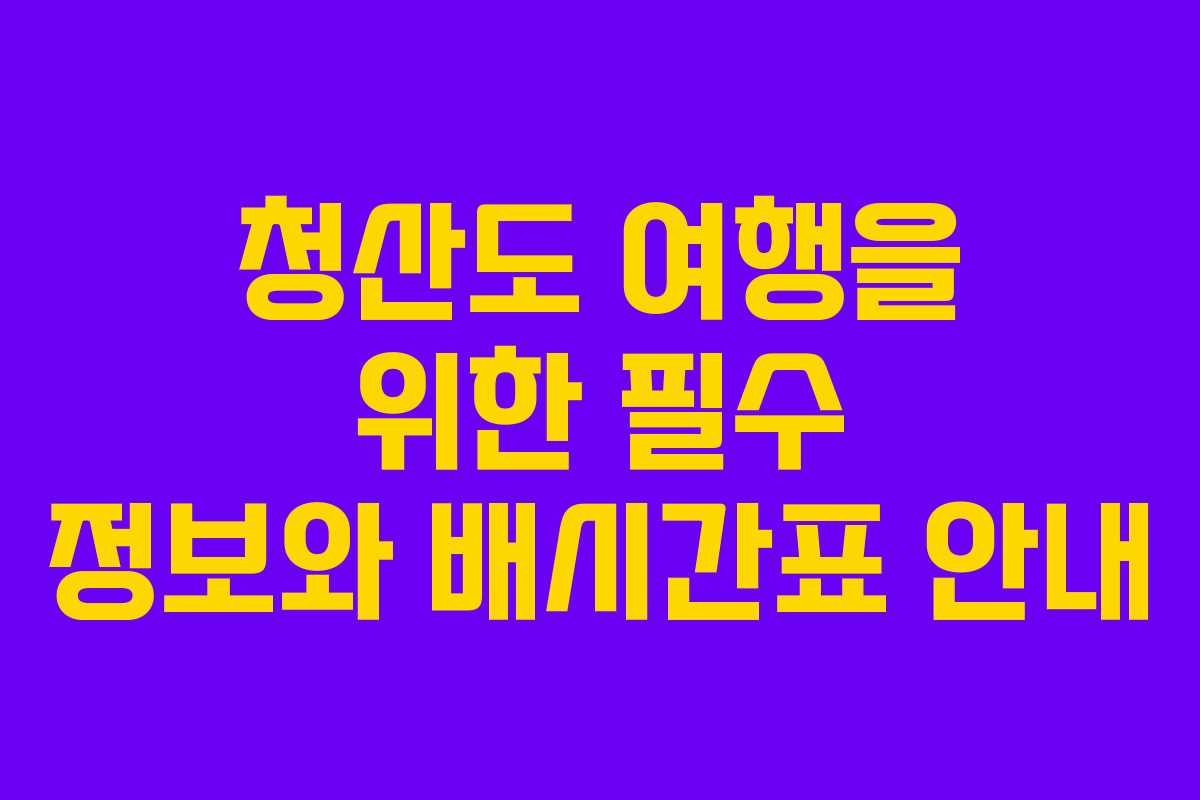 청산도는 아름다운 자연경관과 여유로운 분위기로 유명한 섬입니다. 많은 여행자들이 청산도의 매력에 빠져들고, 그 중에서도 배편은 여행의 시작과 끝을 결정짓는 중요한 요소입니다. 이번 포스팅에서는 청산도 배시간표를 비롯해 요금, 예약 방법, 그리고 여행 후기를 통해 실질적인 정보를 제공할 것입니다.