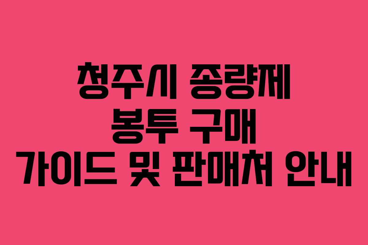 - 1. 청주시 종량제 봉투는 어디에서 구매하나요