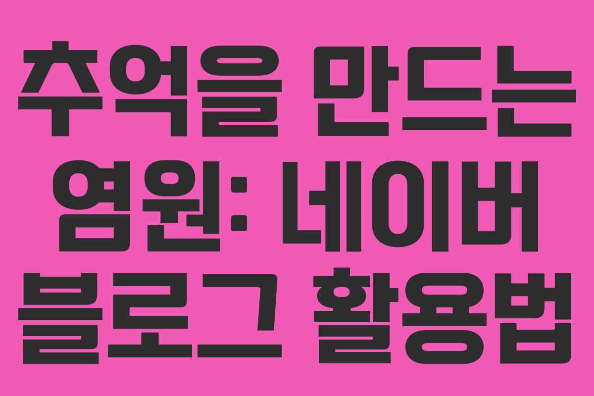 블로그는 개인의 생각과 경험을 기록하고 공유할 수 있는 훌륭한 플랫폼입니다. 특히 네이버 블로그는 많은 사용자들이 활동하는 공간으로, 추억을 기록하고 나누기에 적합합니다. 이번 글에서는 네이버 블로그를 통해 어떻게 추억을 만들고 공유할 수 있는지에 대해 알아보겠습니다.