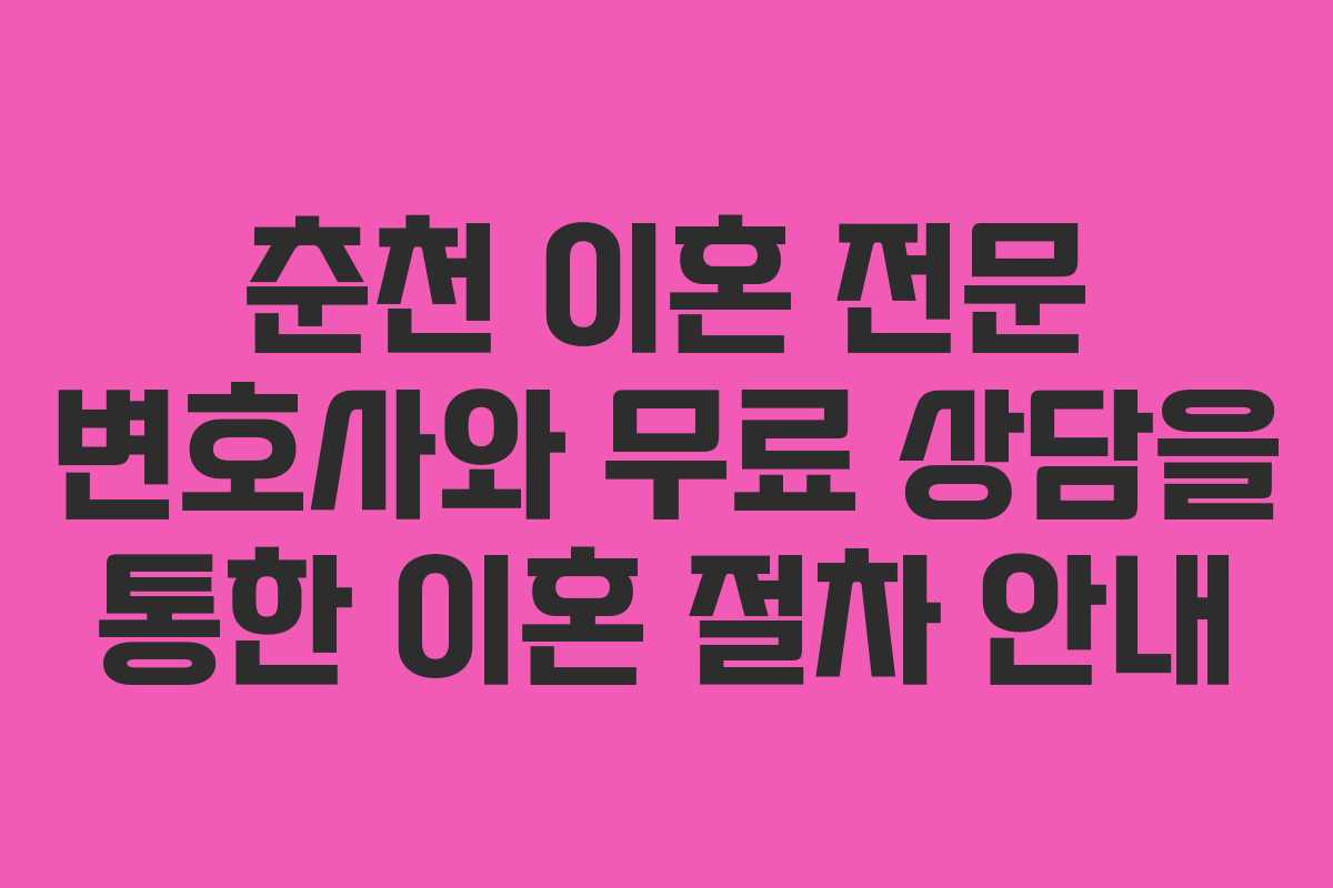 춘천 내 여러 이혼 전문 변호사 사무소에서 무료 상담을 제공하므로, 가까운 곳을 찾아 상담을 요청하면 됩니다.