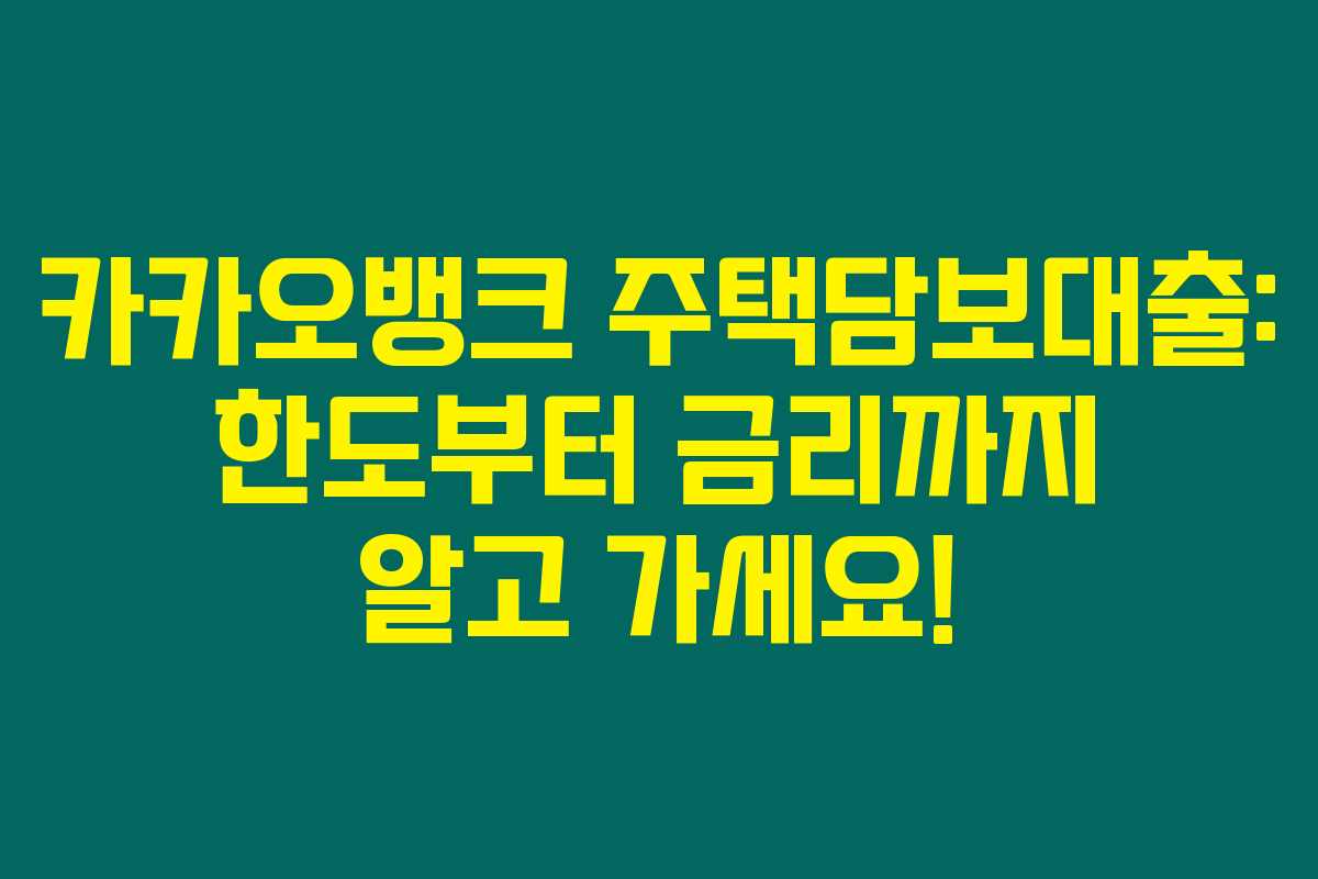 제가 직접 리서치한 바로는, 카카오뱅크 주택담보대출은 내집 마련을 희망하는 분들에게 매우 유용한 선택이 될 수 있습니다. 특유의 저렴한 금리와 간편한 신청 절차 덕분에 많은 사람들이 카카오뱅크를 찾고 있답니다. 아래를 읽어보시면 카카오뱅크 주택담보대출의 한도, 금리, 중도상환 조건, 제출 필요한 서류 및 신용점수 등급 그리고 대출 거절 원인에 대해 상세히 알아보실 수 있어요.