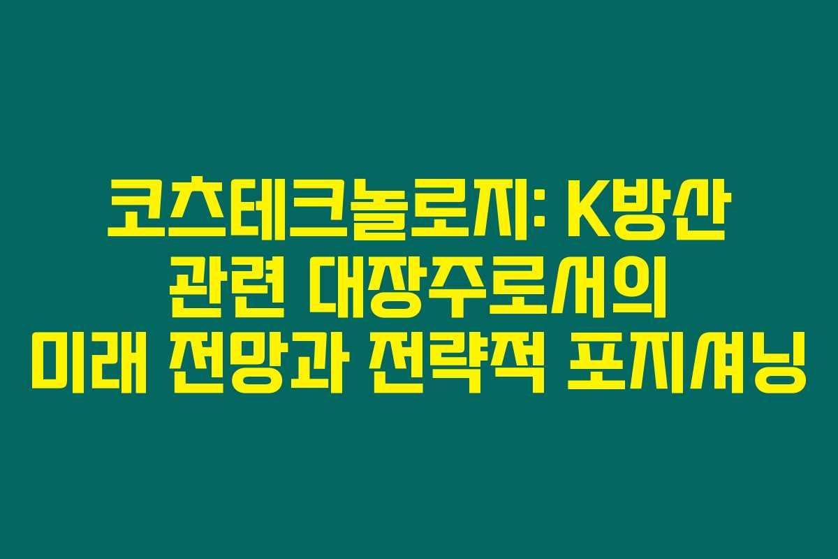K방산 시장은 향후 해외 수출이 증가할 것으로 예상되어, 코츠테크놀로지와 같은 기업에 긍정적인 영향을 미칠 것입니다.