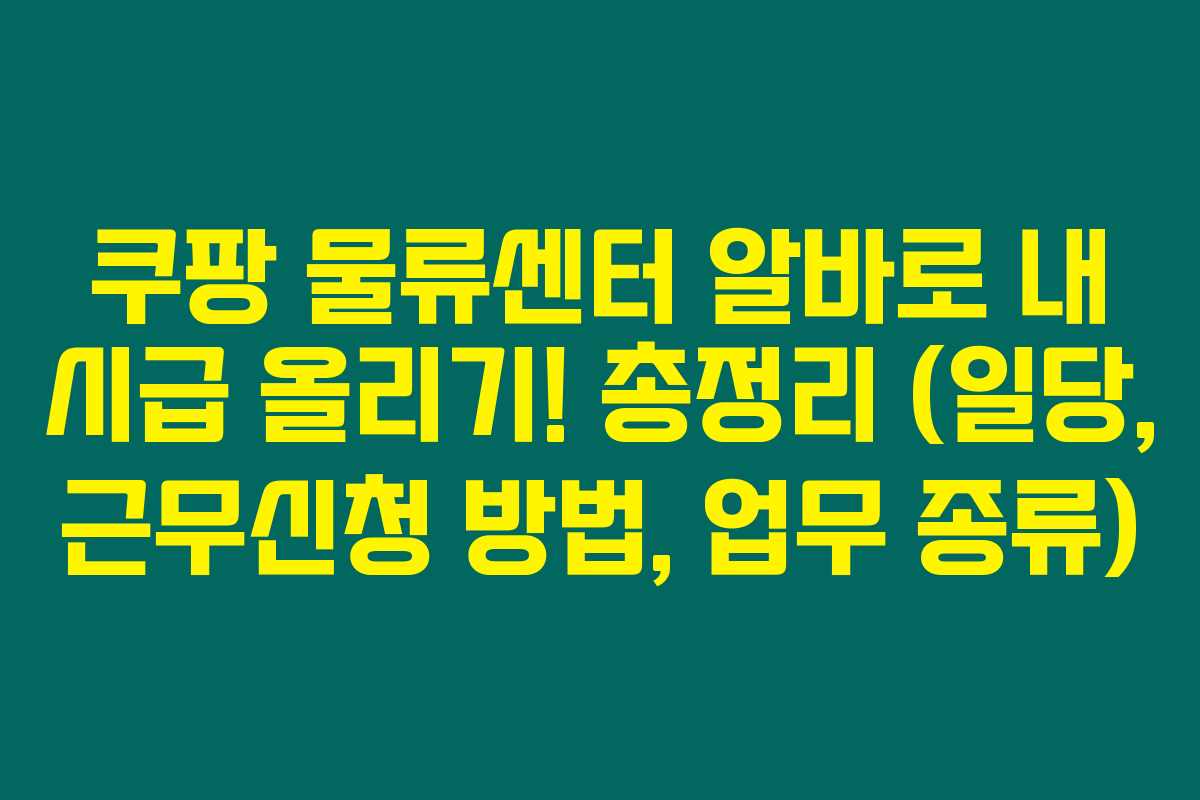 1. 쿠팡 물류센터 알바 신청 어떻게 하나요?