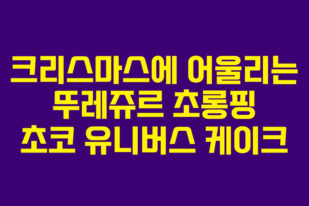 크리스마스 시즌이 다가오면 많은 이들이 기다리는 특별한 디저트가 있습니다. 바로 크리스마스 케이크입니다. 이 시기에 소중한 사람들과 함께 나누는 케이크는 더없이 달콤한 기억을 만들어줍니다. 올해는 뚜레쥬르의 초롱핑 초코 유니버스 케이크를 선택해보는 것은 어떨까요? 귀여운 캐릭터와 우주 테마 디자인, 그리고 할인 혜택이 돋보이는 이 케이크에 대해 알아보겠습니다.