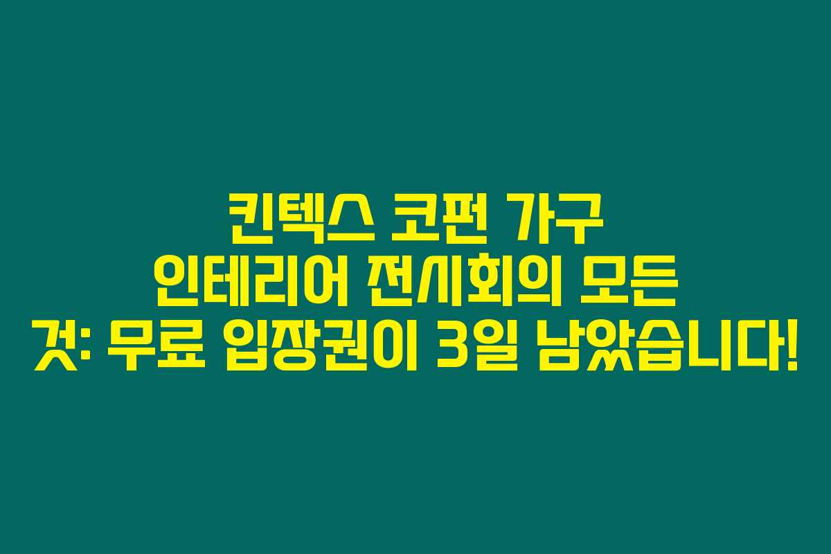킨텍스 코펀 가구 인테리어 전시회의 모든 것: 무료 입장권이 3일 남았습니다!