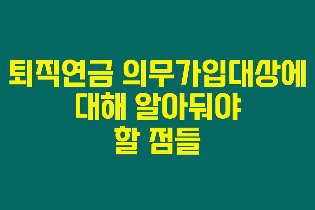 퇴직연금 제도는 근로자의 퇴직 후 생활 안정을 위한 중요한 장치입니다. 더불어 고용주에게도 복지 증진을 통한 긍정적인 효과를 가져다줄 수 있답니다. 퇴직연금의 의무가입 대상과 관련된 규정을 이해하고 이를 준수하여, 안정적인 경제적 기반을 다지시기 바랍니다.