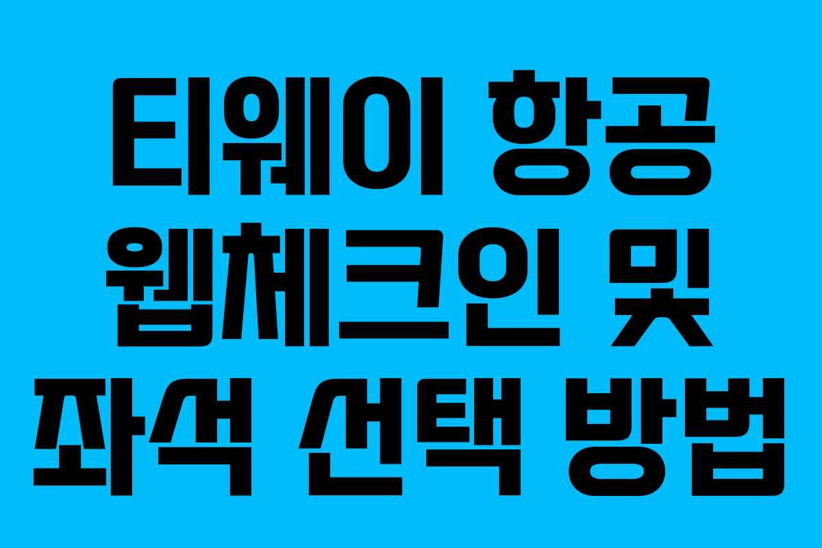 티웨이 항공 웹체크인 및 좌석 선택 방법