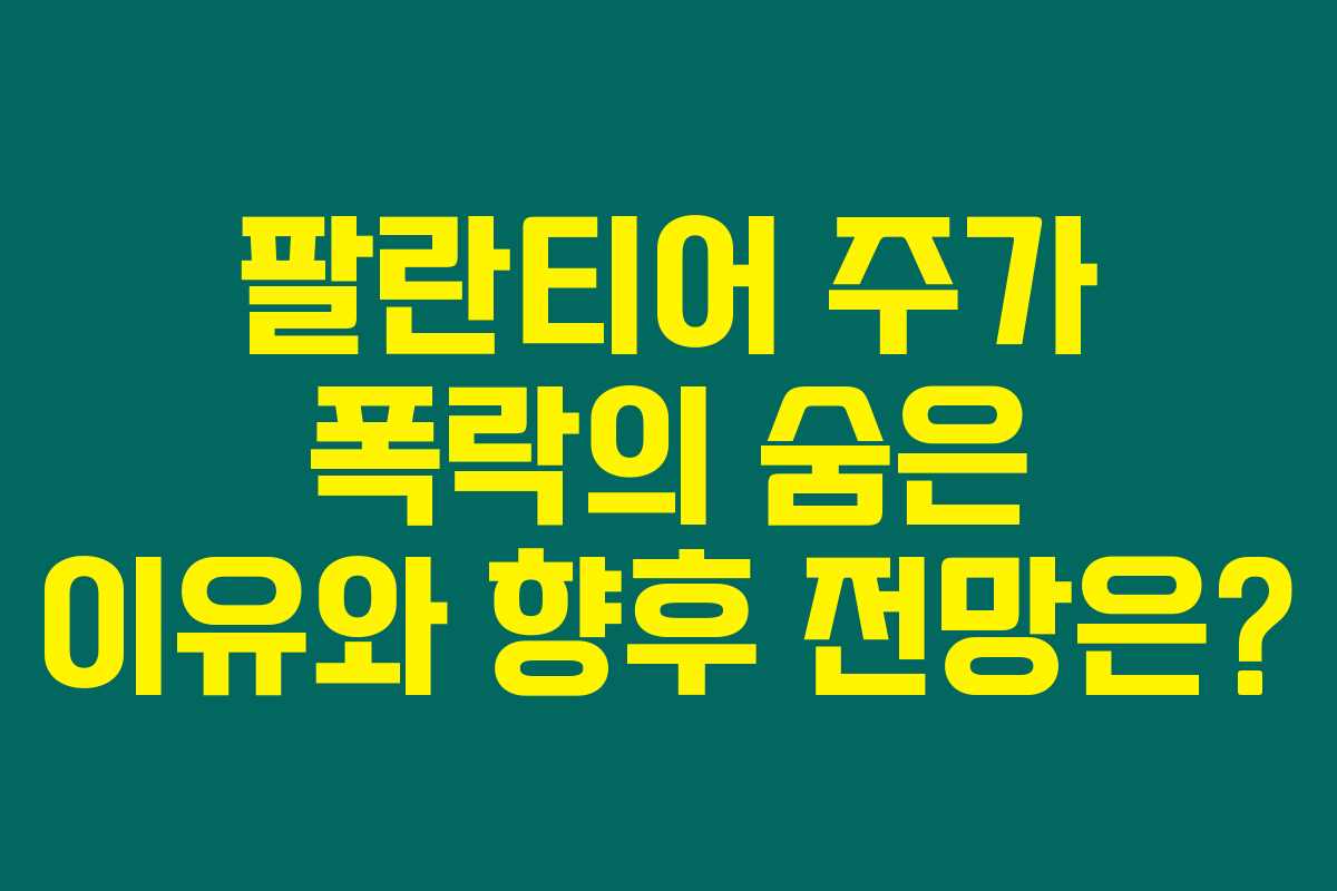 팔란티어 주가 폭락의 숨은 이유와 향후 전망은?