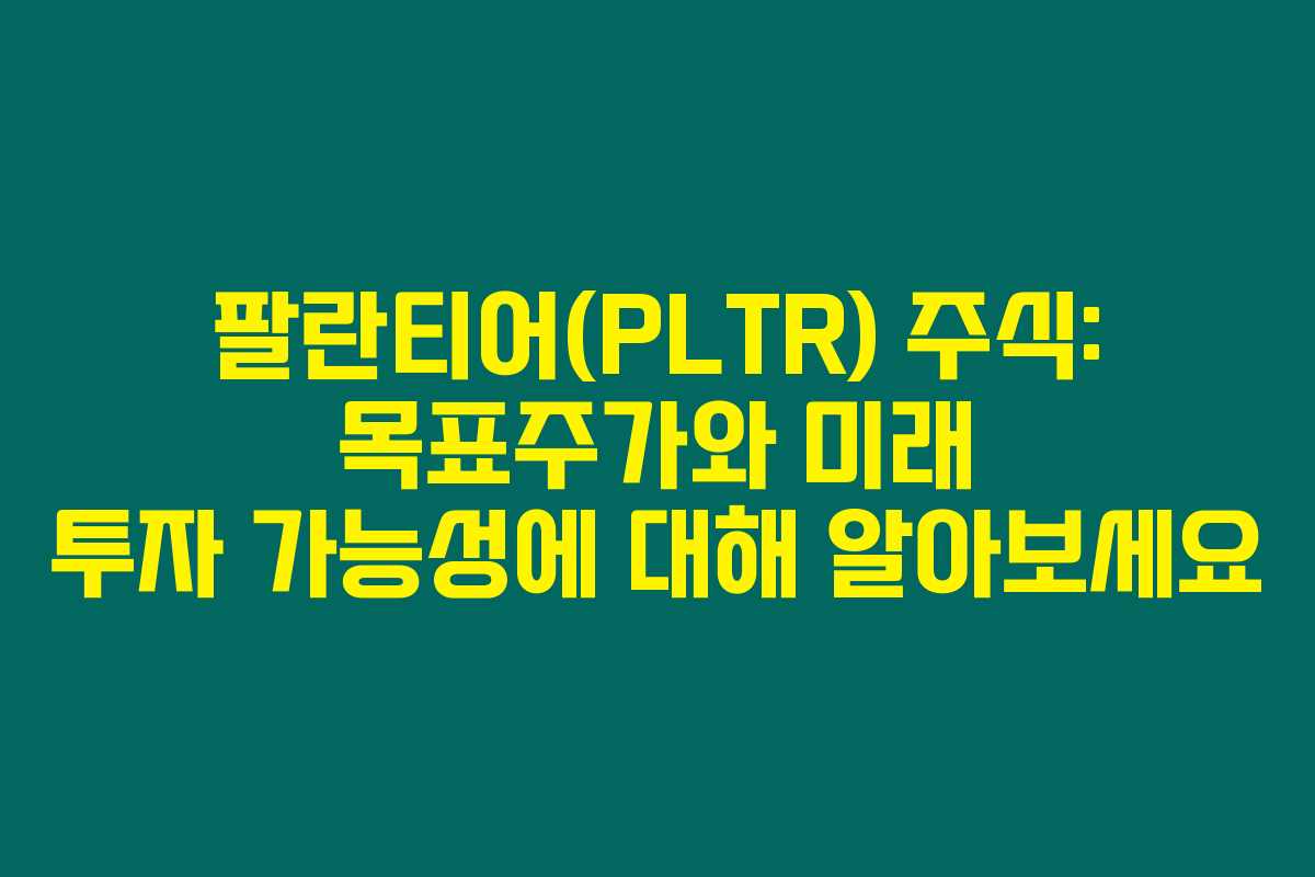 팔란티어(PLTR) 주식: 목표주가와 미래 투자 가능성에 대해 알아보세요