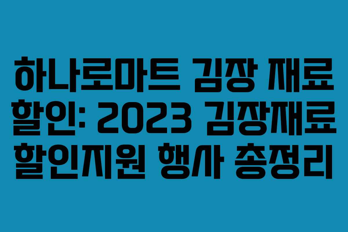 아래를 읽어보시면 하나로마트의 김장 재료 할인 적용 방법과 주요 품목, 기간, 혜택을 한눈에 확인할 수 있습니다. 저렴한 가격으로 알뜰하게 준비하는 팁도 함께 담았습니다.