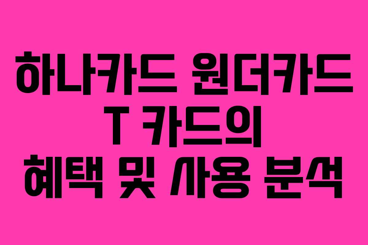 하나카드 원더카드 T 카드의 장단점 분석