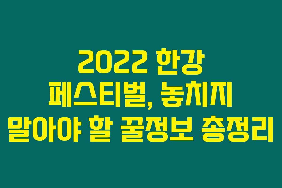 2022 한강 페스티벌은 단순한 축제가 아니에요. 우리가 함께 도전하고, 체험하며, 즐기는 특별한 순간들이 가득할 거랍니다. 이런 기회는 자주 오지 않으니 만끽하세요!