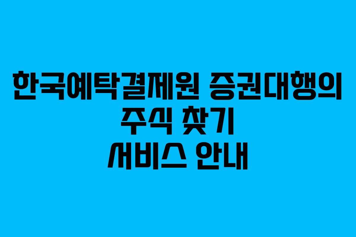 한국예탁결제원(KSD)에서 제공하는 주식 찾기 서비스는 주식 보유 현황을 확인할 수 있는 유용한 기능입니다. 이 서비스는 개인 주주가 미수령 주식 및 종이주권의 내역을 조회할 수 있도록 도와줍니다.