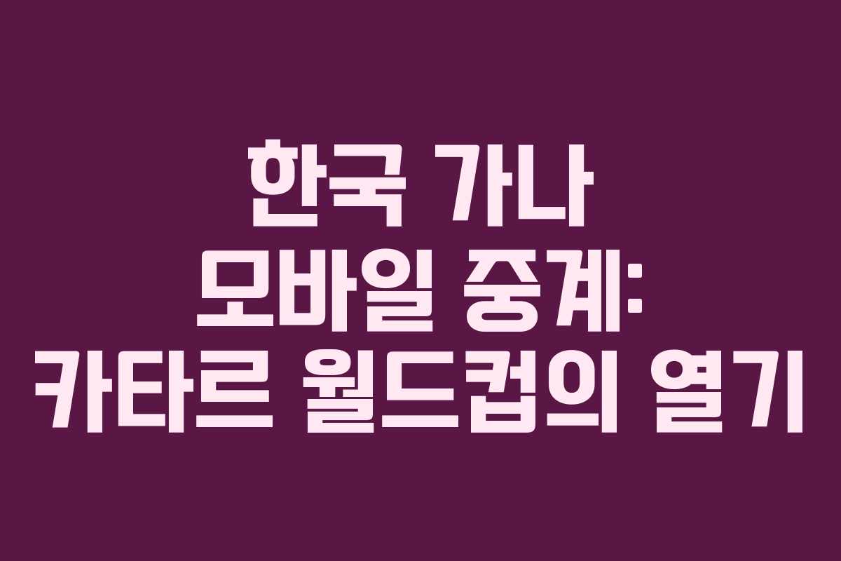 한국과 가나의 조별리그 경기는 2022년 11월 28일 오후 10시에 진행됩니다. 이번 경기는 H조에 속한 중요한 경기로, 중계는 지상파, 케이블 TV, 그리고 다양한 OTT 플랫폼에서 시청할 수 있습니다.