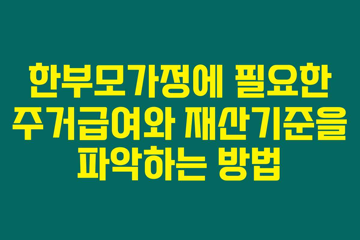 한부모가정에 필요한 주거급여와 재산기준을 파악하는 방법