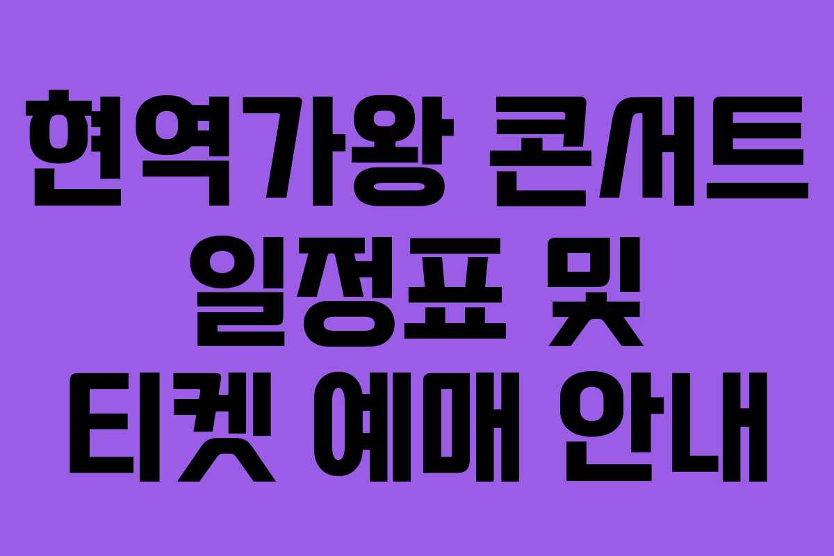 현역가왕 콘서트 티켓은 공식 예매 사이트에서 구매할 수 있습니다. 각 공연의 티켓 오픈 일정에 맞추어 예매를 진행하세요.