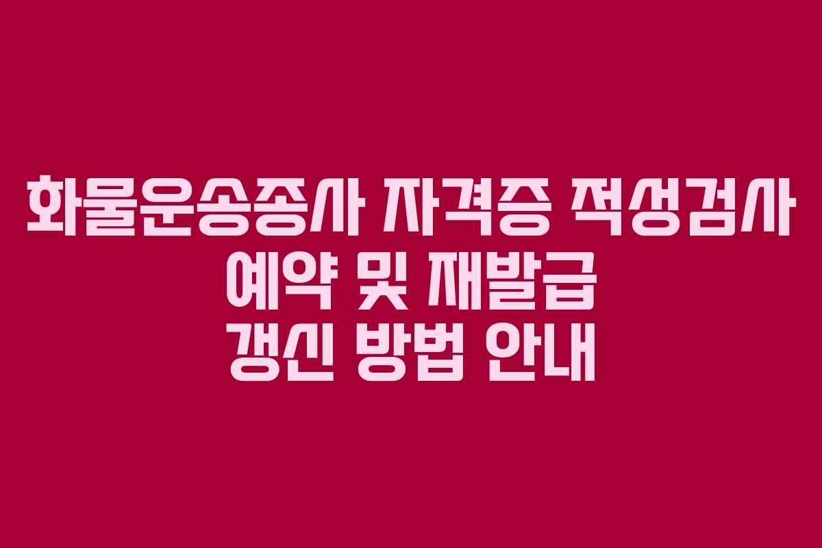 화물운송종사 자격증의 적성검사 예약, 재발급 및 갱신 방법에 대한 안내를 제공했습니다. 제시된 방법을 통해 안전하고 원활하게 자격증을 관리하시기 바랍니다.
