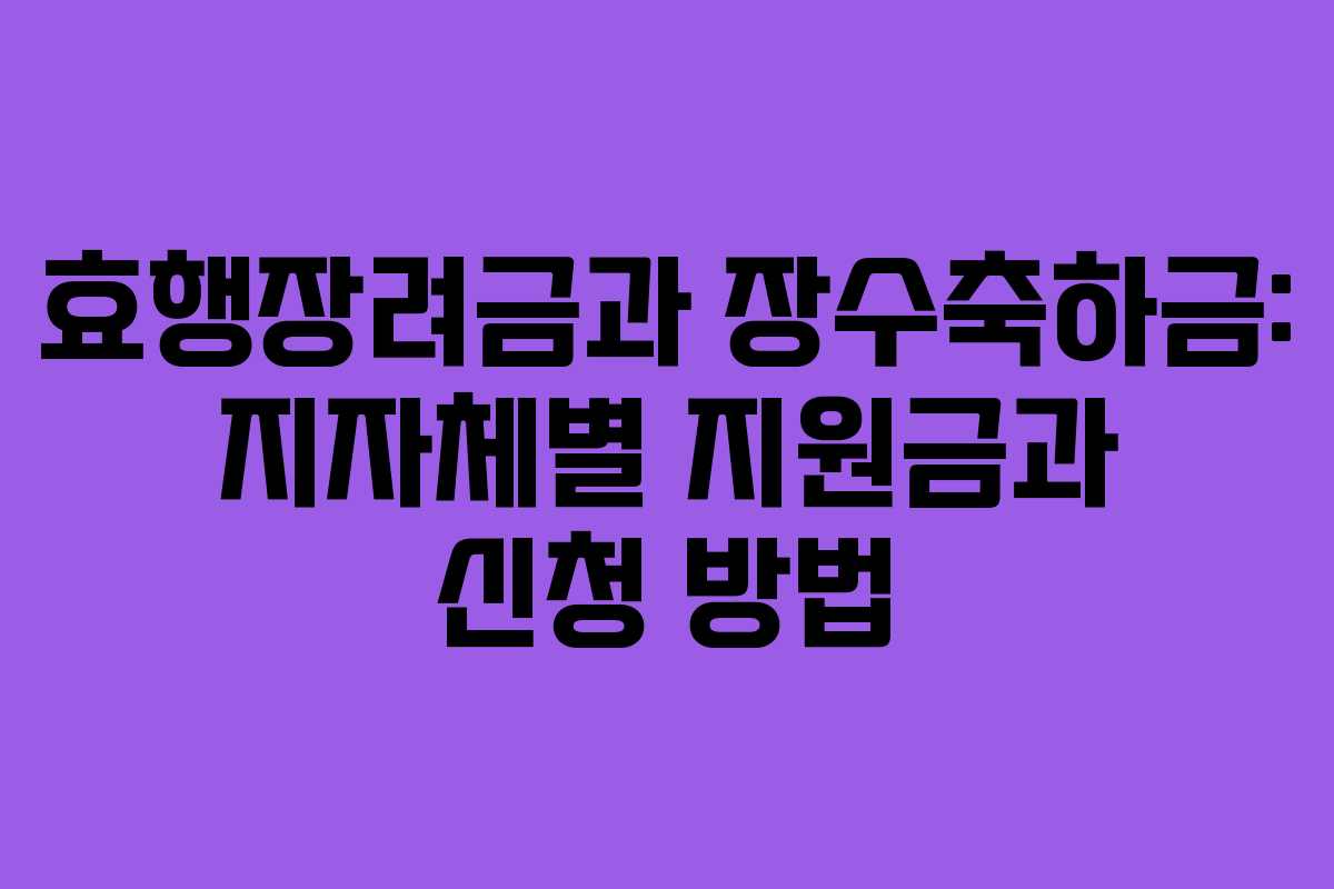 효행장려금과 장수축하금은 노인을 부양하는 가정에 제공되는 중요한 금전적 지원입니다. 이 두 가지 지원금은 지자체마다 상이한 금액과 조건이 있으므로, 해당 정보를 정확히 파악하는 것이 필요합니다.