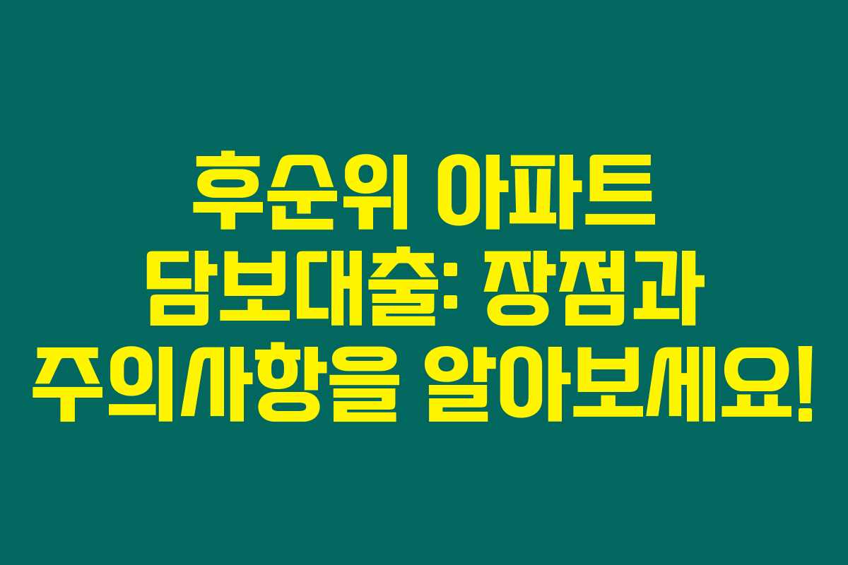 후순위 아파트 담보대출: 장점과 주의사항을 알아보세요!