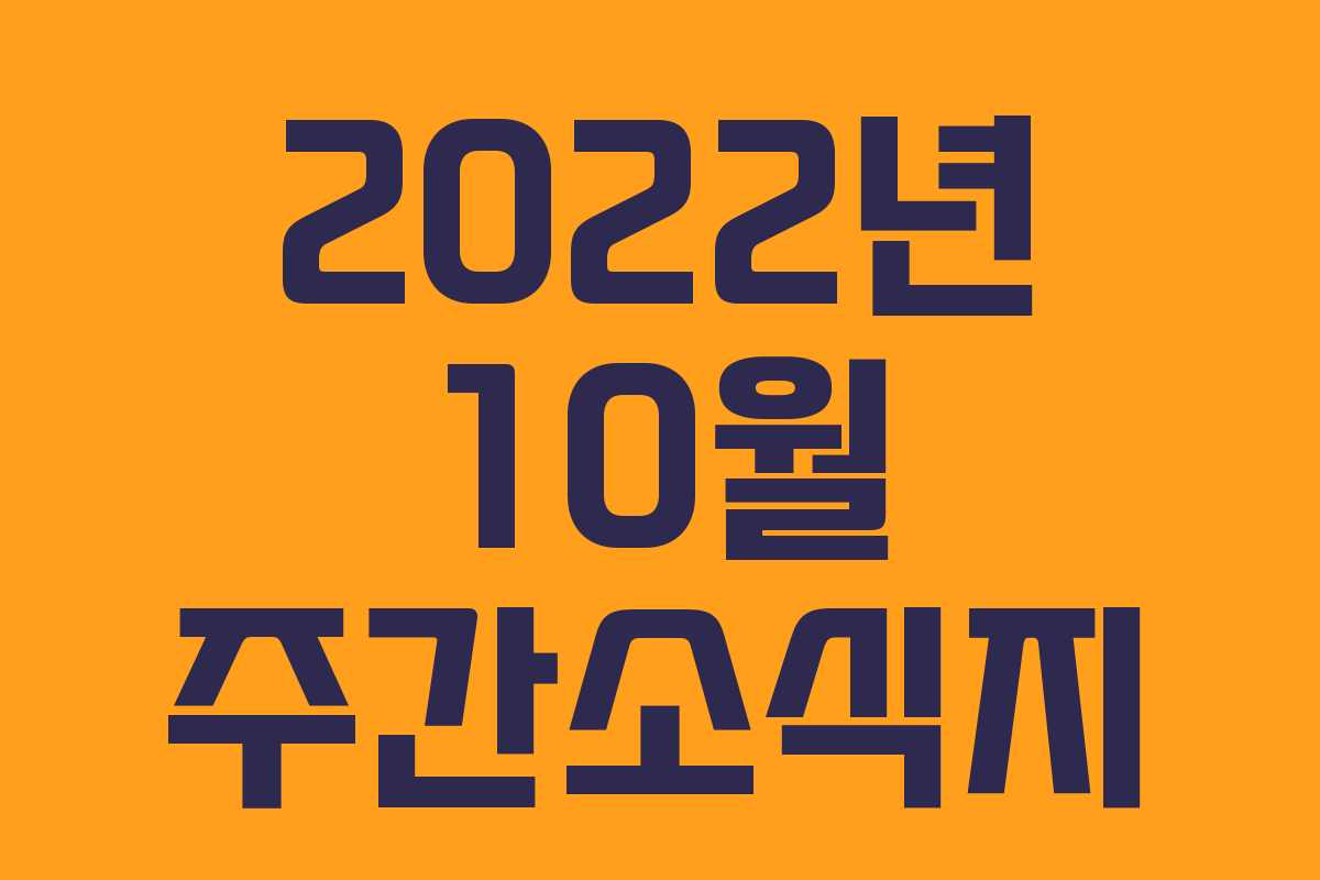 이번 주간소식지는 2022년 10월 7일부터 10월 13일까지의 주요 뉴스를 중심으로 구성되었습니다. 날씨가 급격히 변하는 가운데, 건강 유의하시기 바랍니다.