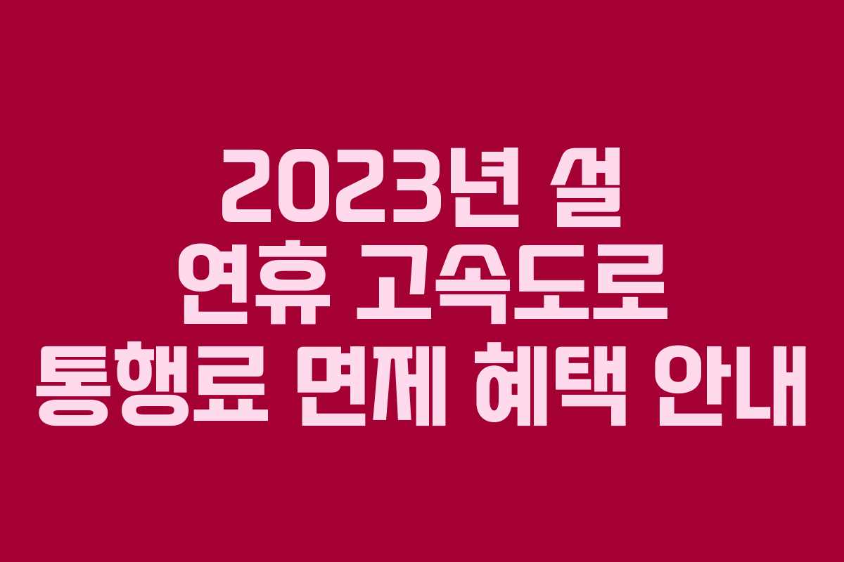 2023년 설 연휴가 다가오면서 많은 이들이 고향을 찾기 위해 고속도로를 이용할 예정이다. 이번 설날에는 특별히 통행료가 면제되는 혜택이 주어진다. 안전하고 편리하게 여행을 즐길 수 있는 기회를 놓치지 않도록 하자.