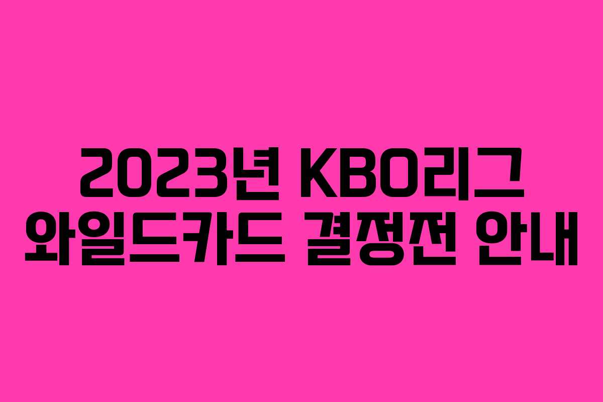 2023년 KBO리그 와일드카드 결정전은 10월 19일에 열립니다. 이번 경기에서 어떤 팀이 준플레이오프에 진출할지 많은 관심과 응원이 필요합니다. 창원에서 펼쳐질 두 팀의 열띤 대결을 기대해 봅니다!