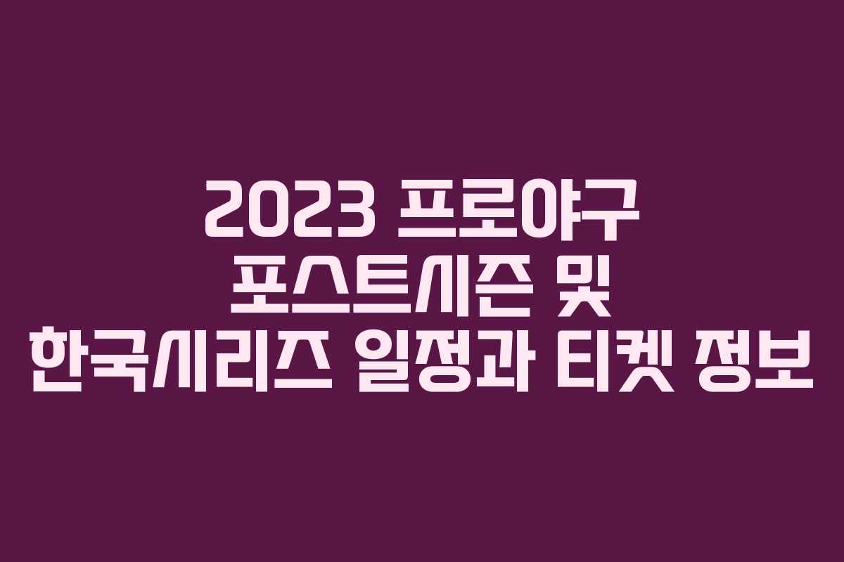 2023년 프로야구 포스트시즌이 한창 진행 중이며, 많은 팬들이 한국시리즈 우승 팀에 대한 기대감을 가지고 있습니다. 이번 글에서는 포스트시즌의 주요 일정과 티켓 예매 방법, 가격에 대해 자세히 설명하겠습니다.