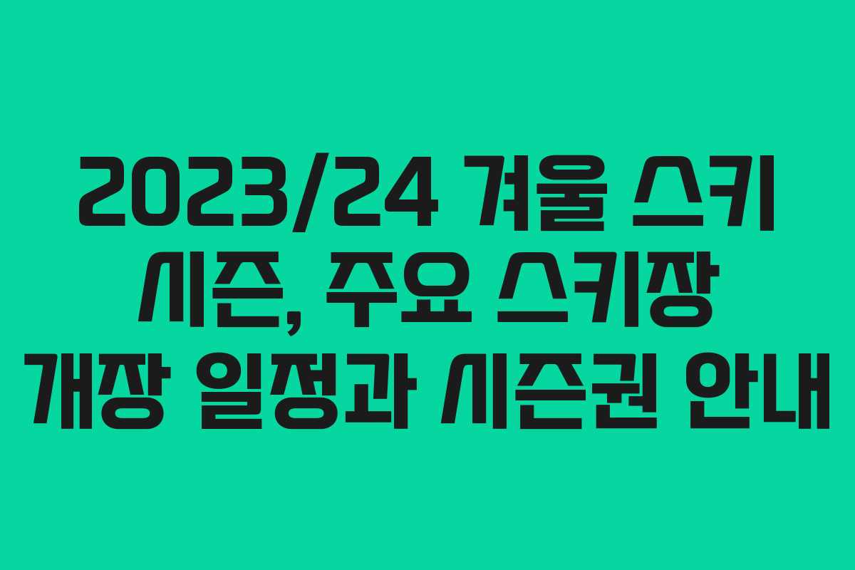 겨울이 다가오면서 스키 애호가들에게는 기다리고 기다리던 스키장 개장 소식이 들려오고 있습니다. 이번 시즌에는 다양한 스키장들이 개장을 준비하고 있으며, 특히 시즌권에 대한 정보도 놓칠 수 없는 요소입니다. 이번 글에서는 2023/24 시즌의 전국 스키장 개장 일정과 각 스키장의 시즌권에 대해 알아보겠습니다.