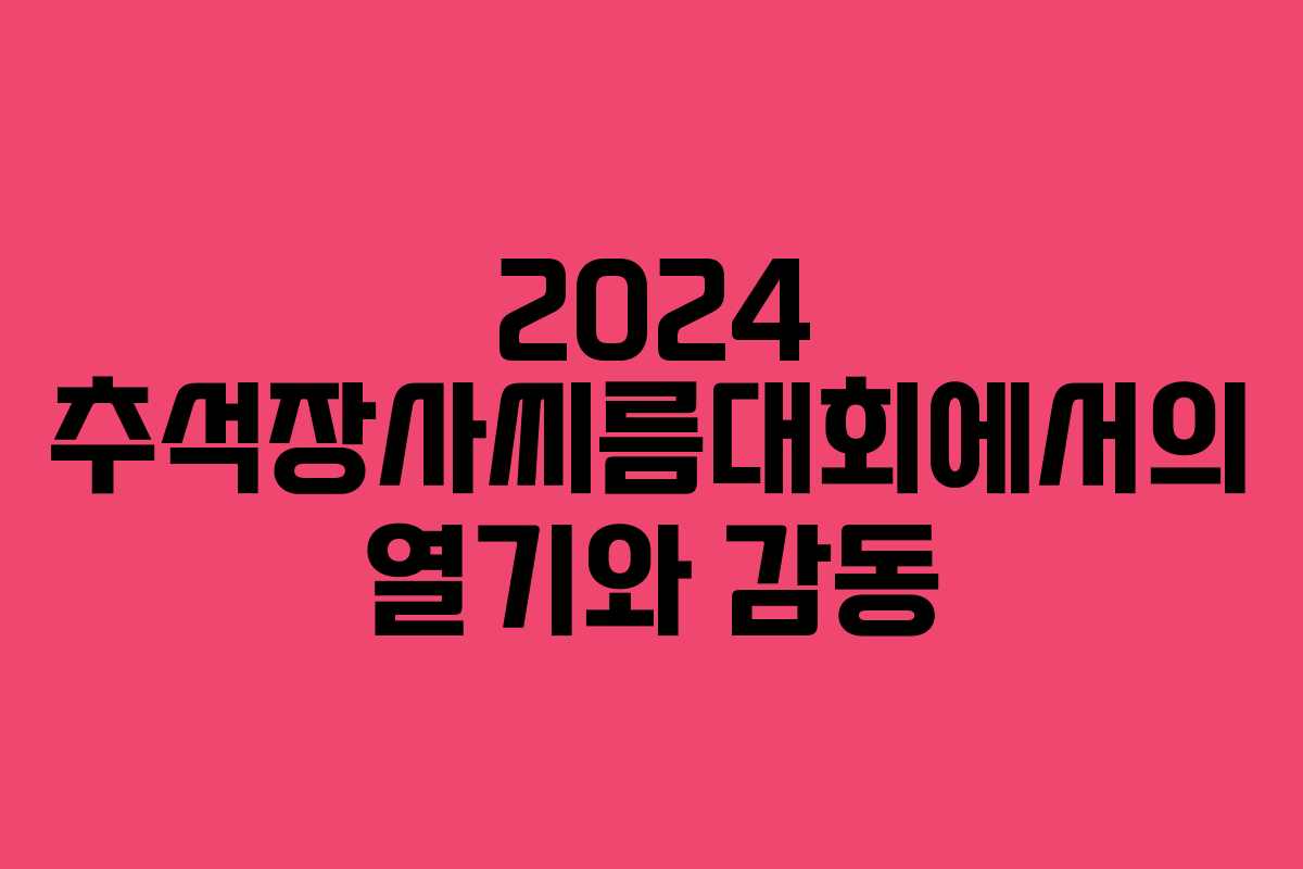 명절마다 열리는 씨름대회는 단순한 스포츠 이벤트를 넘어 많은 사람들에게 감동을 주는 순간들로 가득하다. 2024 추석장사씨름대회는 9월 12일부터 18일까지 경상남도 고성군에서 개최되었으며, 이 대회는 씨름의 매력을 새삼 느끼게 해주는 중요한 행사이다. 씨름을 즐기는 이들은 대회의 중계를 통해 짜릿한 순간들을 함께 나누며, 선수들의 열정과 땀을 느낄 수 있다.