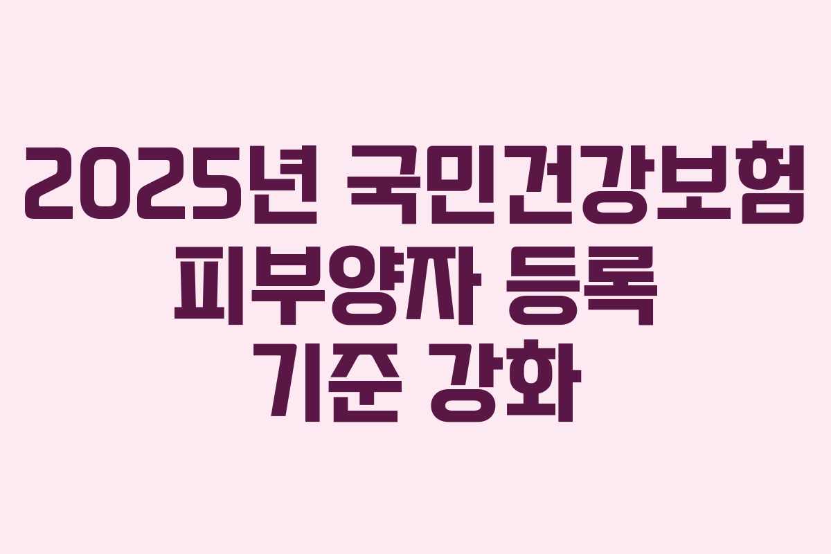2025년부터 국민건강보험 피부양자 등록 기준이 강화되어, 등록을 원하시는 분들은 새로운 소득과 재산 기준을 충족해야 합니다. 피부양자는 직장가입자의 가족으로, 별도의 보험료 없이 건강보험 혜택을 받을 수 있는 제도입니다. 이번 글에서는 피부양자 등록의 조건과 절차에 대해 자세히 알아보겠습니다.