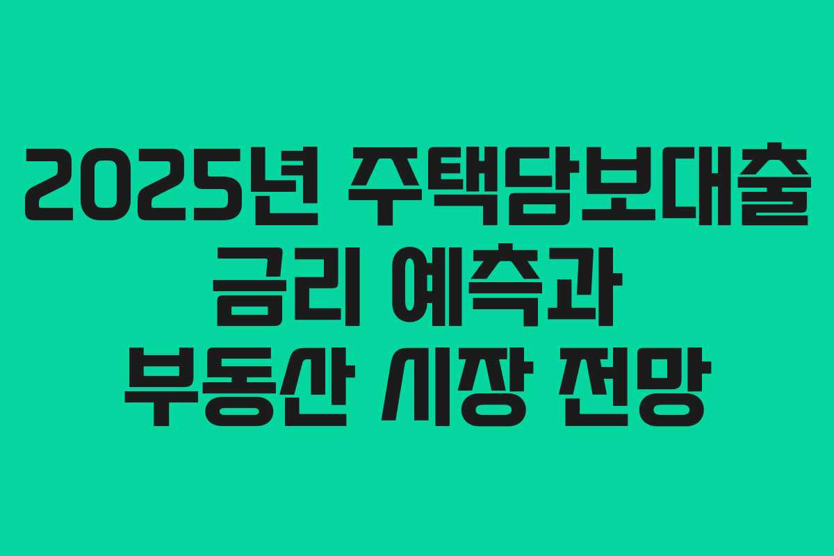 2025년 주택담보대출 금리와 부동산 시장의 향후 전망은 많은 사람들이 관심을 두고 있는 주제입니다. 금리 변동과 부동산 가격 동향, 이를 기반으로 한 대출 전략은 실수요자와 투자자 모두에게 중요한 정보가 될 수 있습니다.