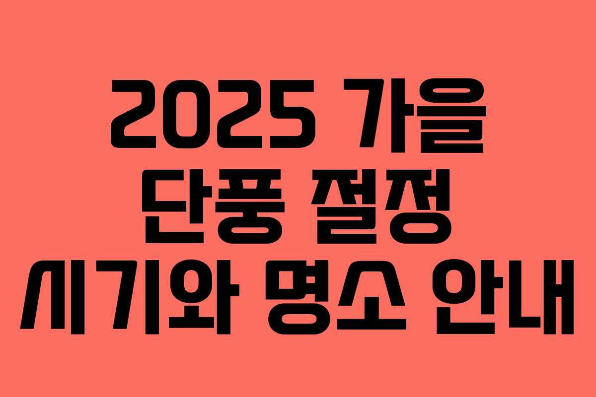 가을이 오면 전국의 산과 숲은 아름다운 단풍으로 물들어 많은 이들이 단풍 구경을 떠납니다. 2025년 가을 단풍의 절정 시기와 명소를 정리하여, 여러분이 가장 예쁜 순간을 놓치지 않도록 도와드리겠습니다.