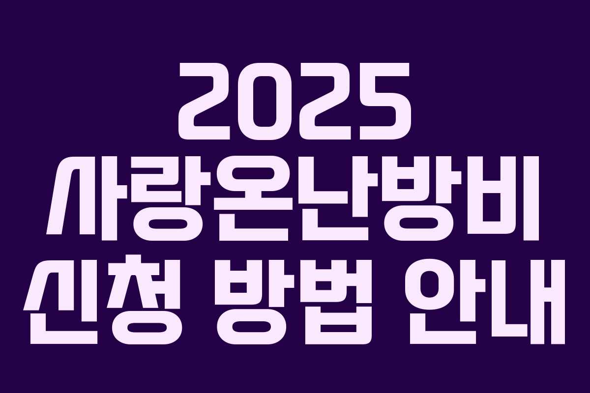 2025 사랑온난방비 신청은 간편하지만 제출서류와 일정 확인이 매우 중요합니다. 주민등록등본과 난방 사진을 미리 준비하고, 신청 기간 내에 접수하시기 바랍니다.