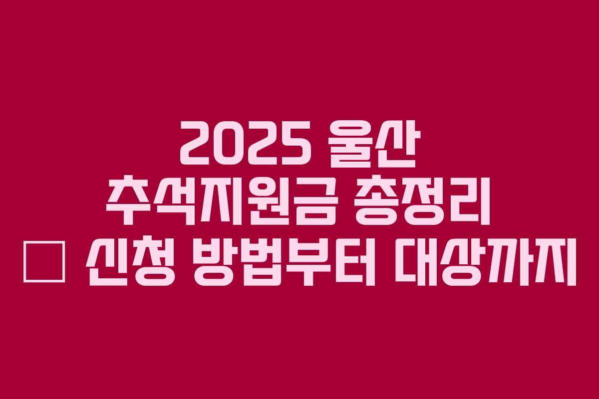 2025년 추석을 맞이하여 울산 시민들이 꼭 알아야 할 지원금에 대한 정보를 정리했습니다. 지원 대상부터 지급 금액, 신청 방법, 유의사항까지 자세히 안내드리니, 명절 준비에 도움이 되시길 바랍니다.