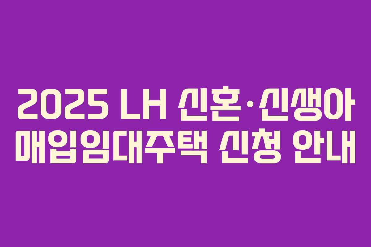 2025년 LH 신혼·신생아 매입임대주택의 입주자 모집이 시작되었습니다. 이 제도는 무주택 신혼부부와 신생아 가구를 위해 시세보다 저렴한 가격으로 주택을 임대하는 프로그램입니다. 이번 글에서는 자격 요건, 임대 조건, 신청 방법 등을 상세히 안내합니다.