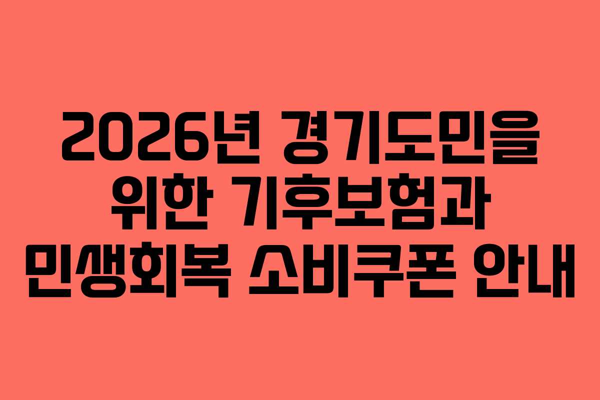 2026년에는 경기도민을 위한 다양한 지원 제도가 시행됩니다. 특히, 기후보험과 민생회복 소비쿠폰은 많은 시민들에게 실질적인 혜택을 제공할 예정입니다. 이 글에서는 이러한 제도들에 대한 구체적인 내용과 신청 방법을 안내하겠습니다.
