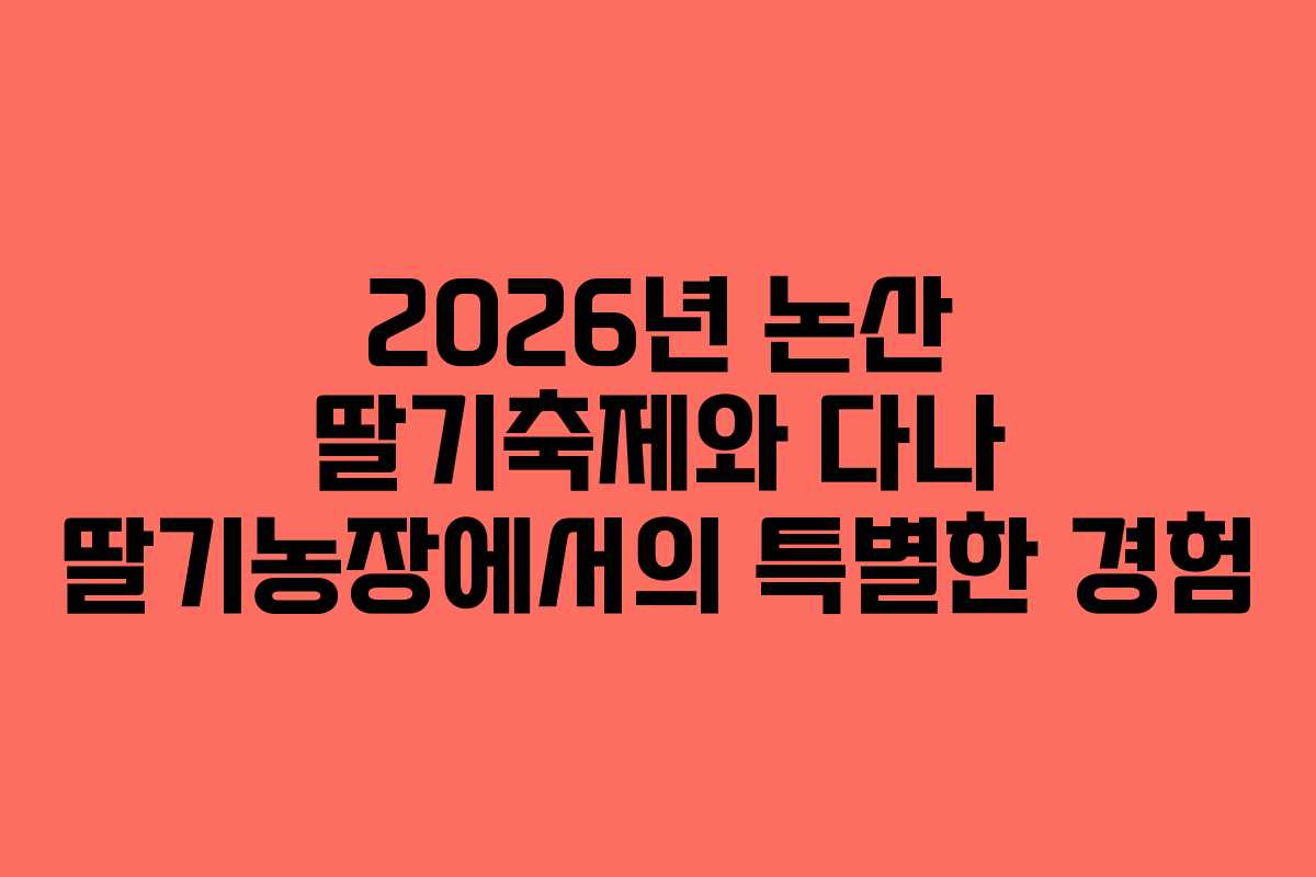 2026년에는 논산시에서 제28회 논산딸기축제가 개최됩니다. 축제는 3월 26일부터 3월 29일까지 논산시민가족공원에서 진행되며, 다양한 프로그램과 체험이 마련되어 있습니다. 특히, ‘다나 딸기농장’에서의 딸기 수확 체험은 많은 이들에게 기억에 남을 특별한 경험으로 자리잡고 있습니다. 이 글에서는 논산딸기축제와 다나 딸기농장에서의 체험을 통해 얻을 수 있는 즐거움과 혜택을 소개하고자 합니다.
