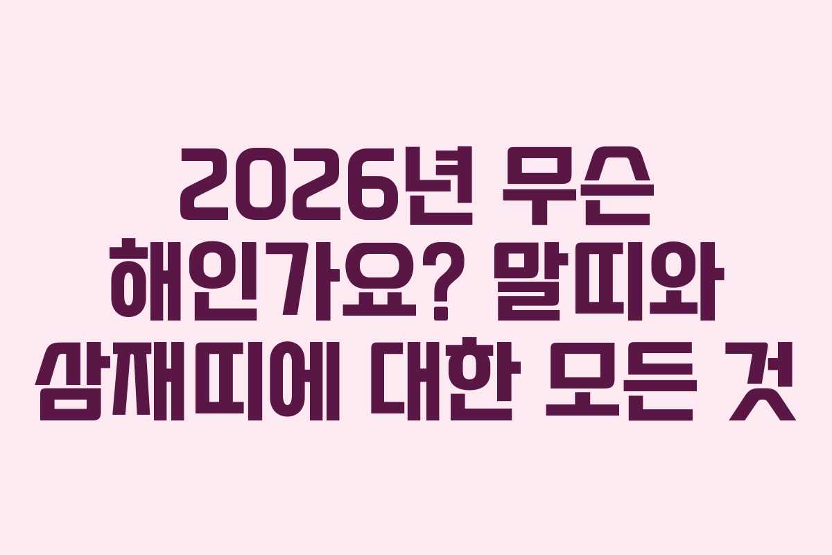 삼재띠는 호랑이띠, 말띠, 개띠를 의미합니다. 이 세 가지 띠는 2026년에 특히 주의가 필요한 띠로 여겨지며, 여러 가지 변화가 있을 수 있습니다. 삼재띠에 해당하는 분들은 이 해에 신중한 결정을 하여야 하며, 긍정적인 에너지를 잘 활용하는 것이 중요합니다.