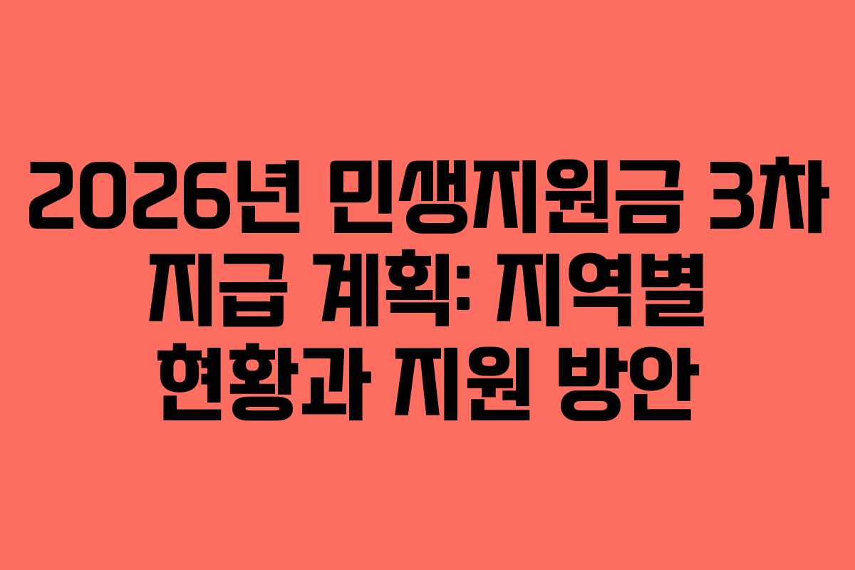 2026년 민생지원금 3차 지급 계획: 지역별 현황과 지원 방안