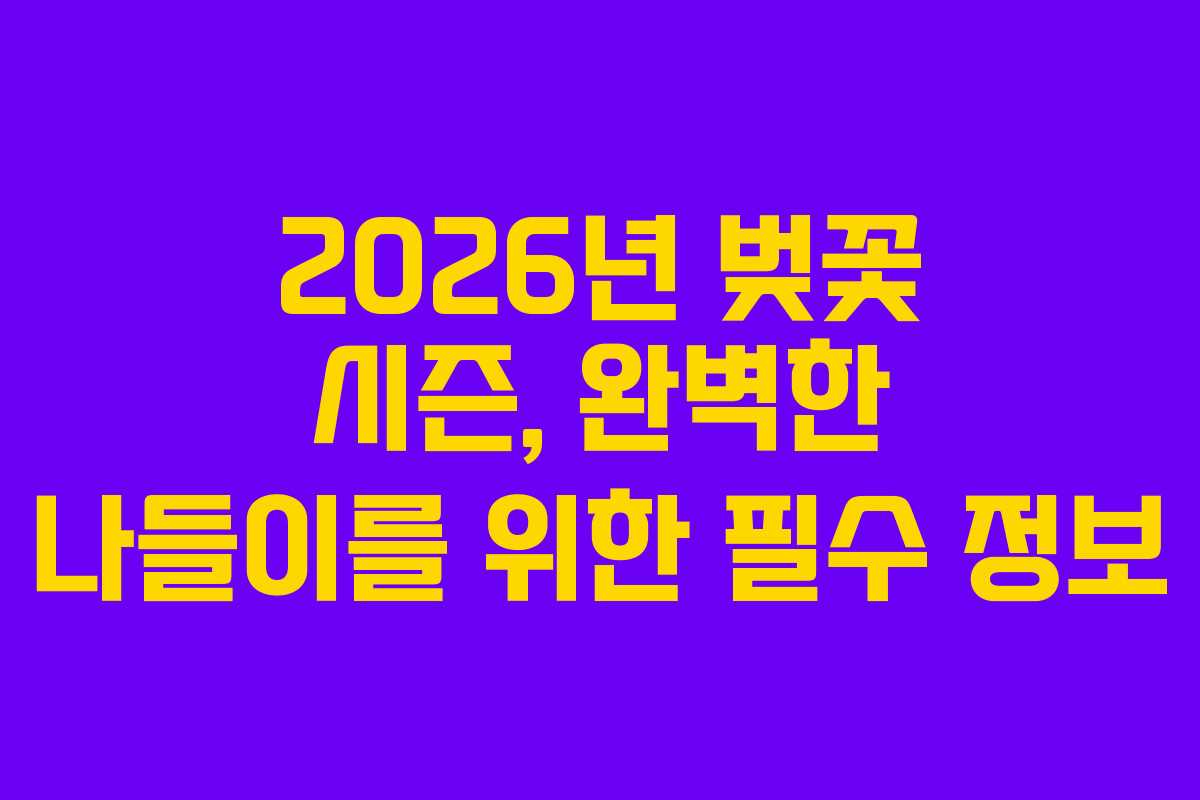 2026년 봄이 다가오면서 많은 사람들이 벚꽃을 기다리고 있습니다. 벚꽃은 매년 많은 이들에게 설렘을 주는 자연의 선물입니다. 이번 글에서는 2026년 벚꽃 개화 시기와 함께 명소들에 대한 정보를 상세히 안내하고, 나들이를 더욱 알차게 즐길 수 있는 방법을 공유하겠습니다. 벚꽃 시즌에 맞춰 계획을 세우고, 놓치지 말아야 할 팁을 정리해보았습니다.