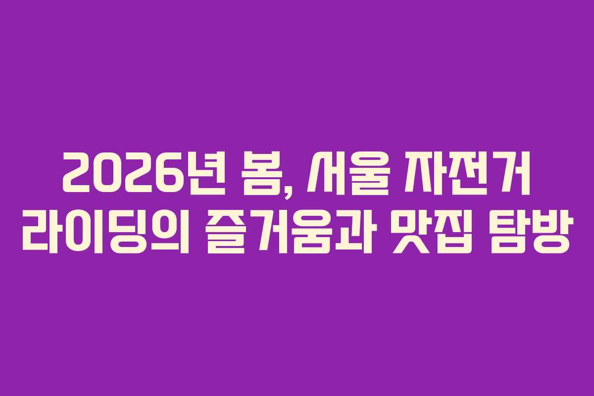 2026년 기준으로 자전거는 서울의 주요 이동 수단으로 자리 잡고 있습니다. 자전거를 타고 다양한 경치를 감상하며 친구들과의 소중한 시간을 보낼 수 있는 기회가 많습니다. 특히, 봄철에는 벚꽃이 만개하여 자전거 라이딩의 즐거움을 더해줍니다.