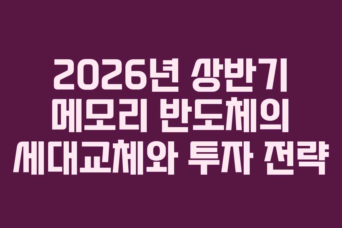 2026년 상반기 메모리 반도체의 세대교체와 투자 전략