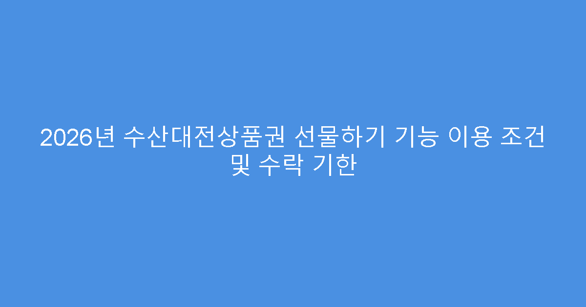 - 💡 2026년 업데이트된 2026년 수산대전상품권 선물하기 핵심 가이드