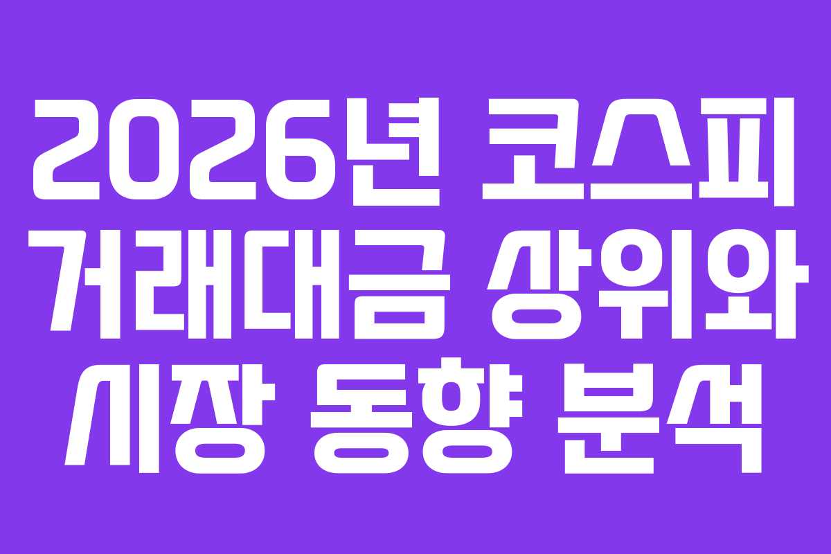 2026년 코스피 거래대금 상위와 시장 동향 분석